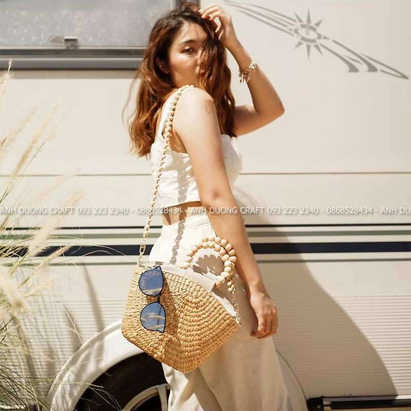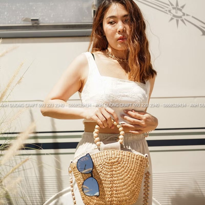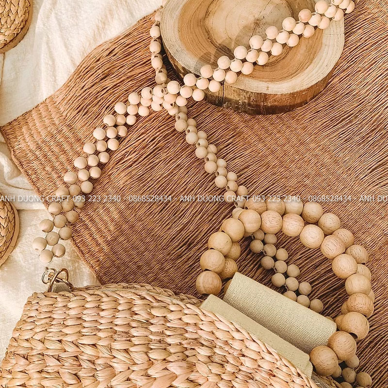 Túi lục bình hình thang, tay cầm tròn hạt gỗ (WHB-392)